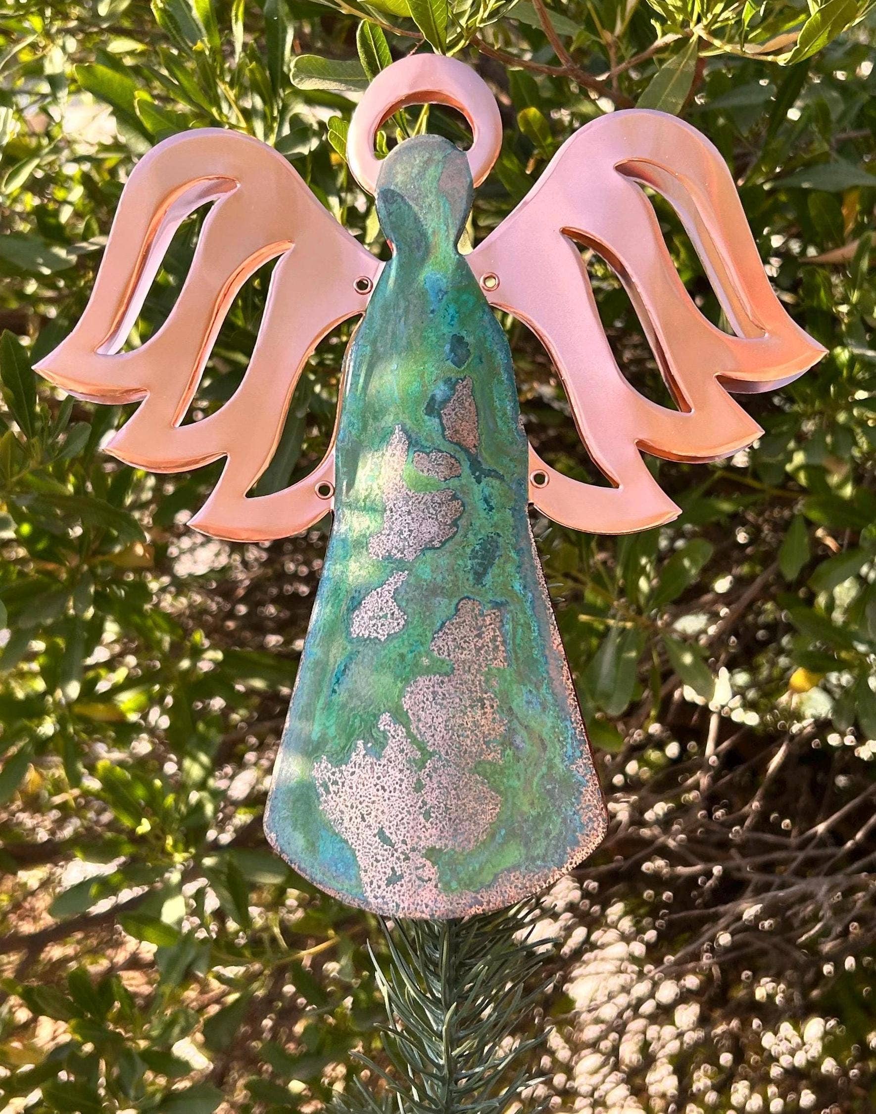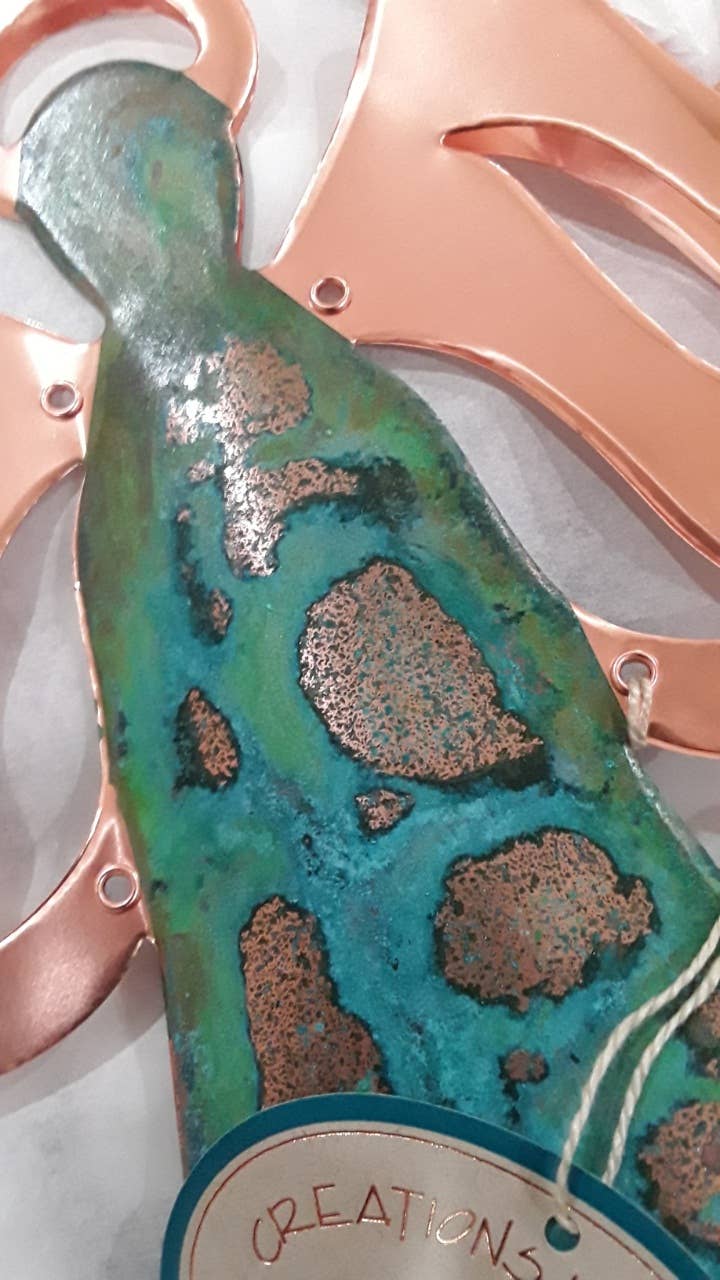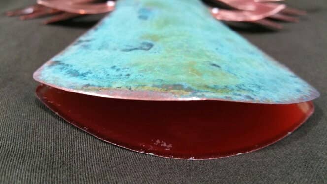 Handcrafted 100% in The Copper State (Arizona USA) with attention given to every detail. Many are brought to life with bends and creases to the designs. No two are exactly the same as inherent ingredients in the copper along with the verdigris application technique and local desert weather conditions all play a part in creating the unique patina of each design.