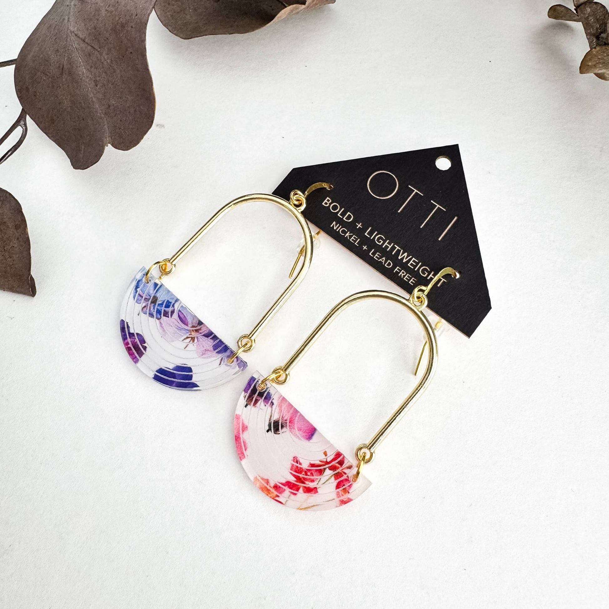 Architectural Half Moon Earrings: Limited SPRING Patterns: Floral Bouquet