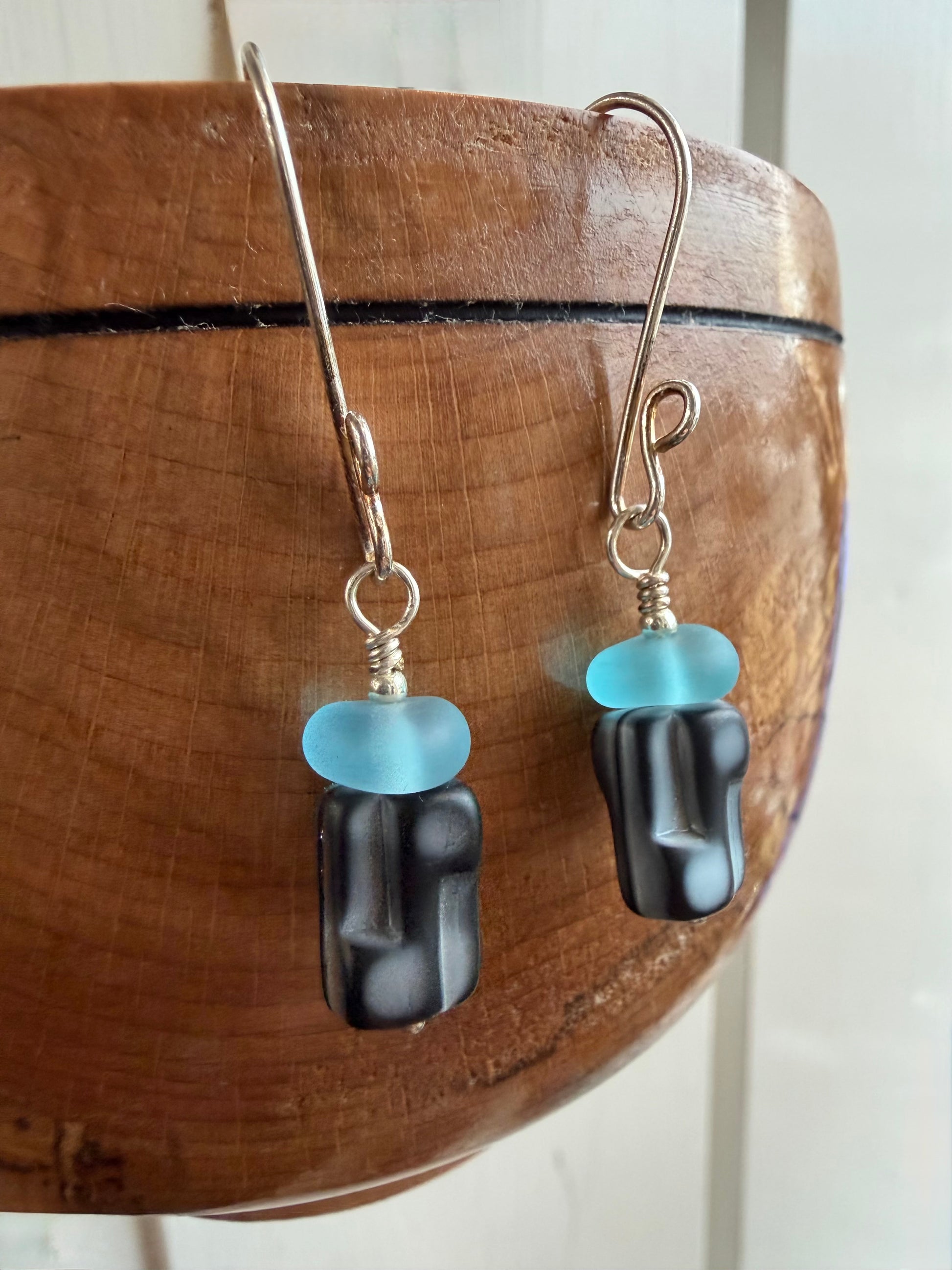 Beach Glass and Abstract Bead Earrings