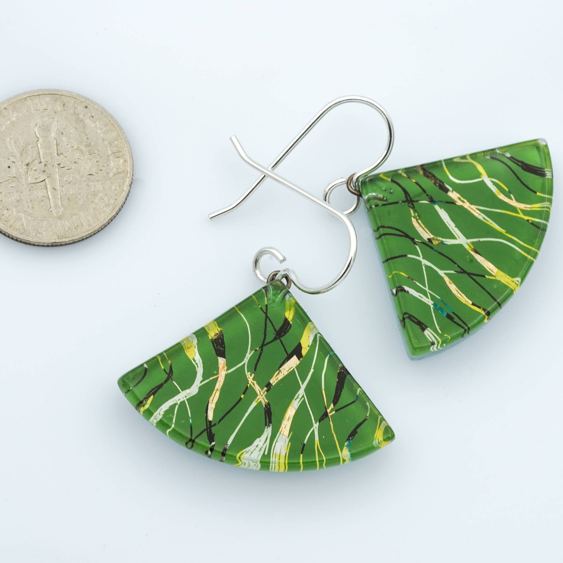 Fibers Fan Earrings, Green: Medium
