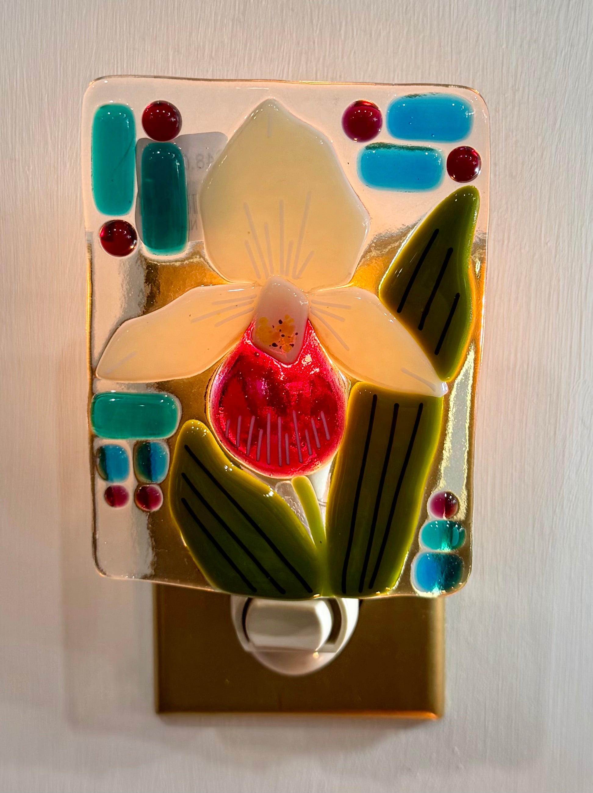 Fused glass nightlight made by Susan Smith of Williamsburg, Michigan