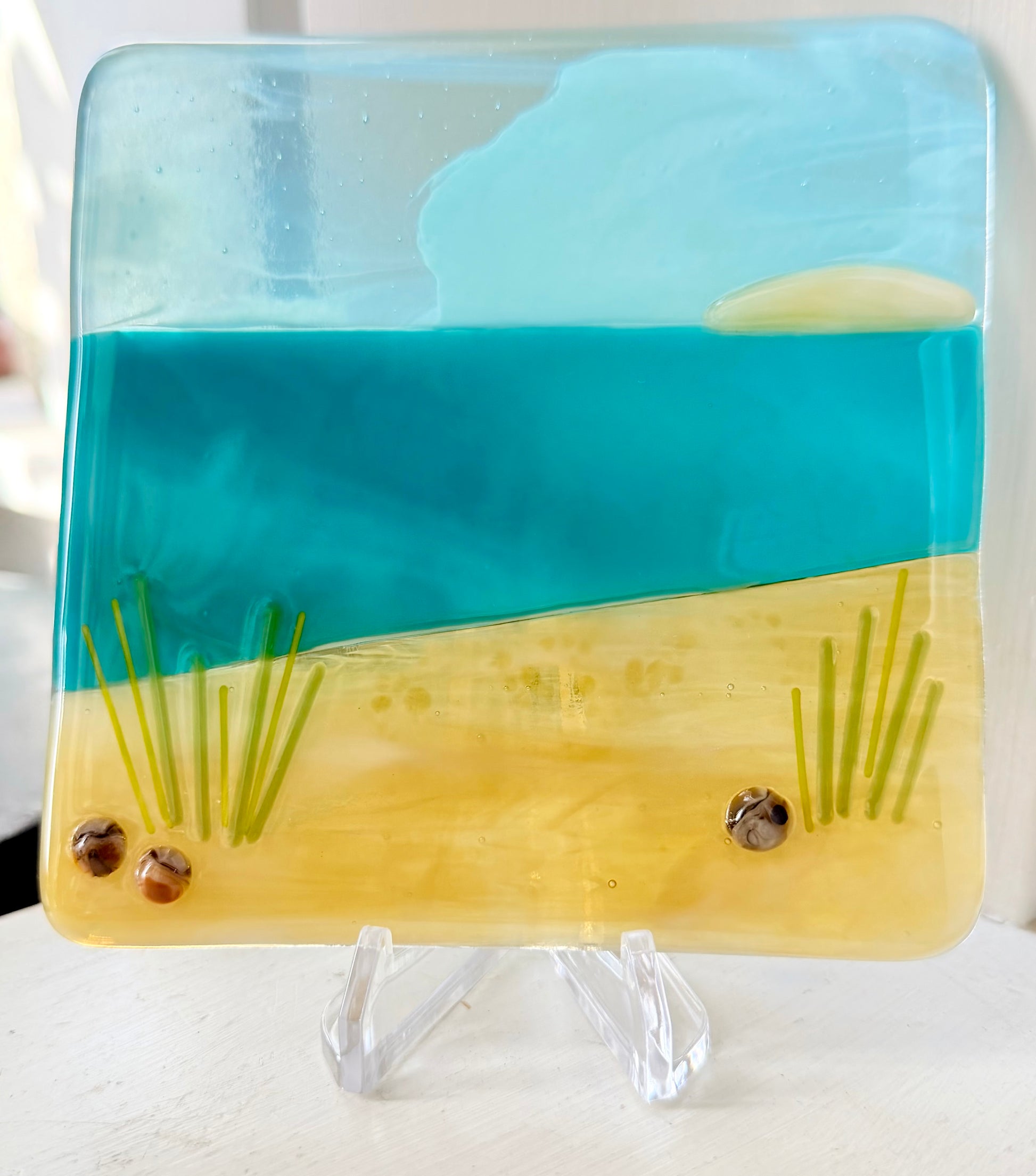 Fused Glass Lake Tile w/ Stand - Various Styles