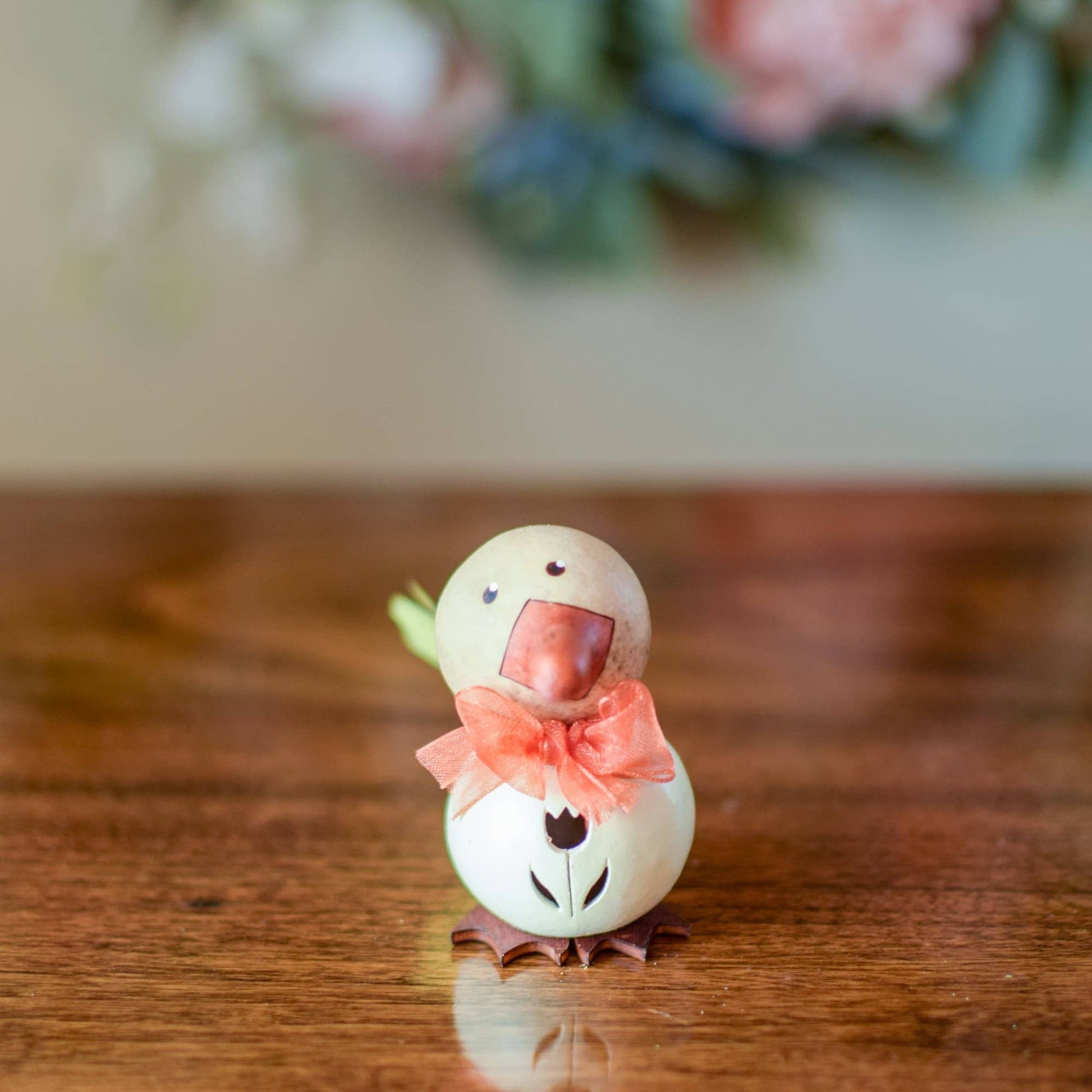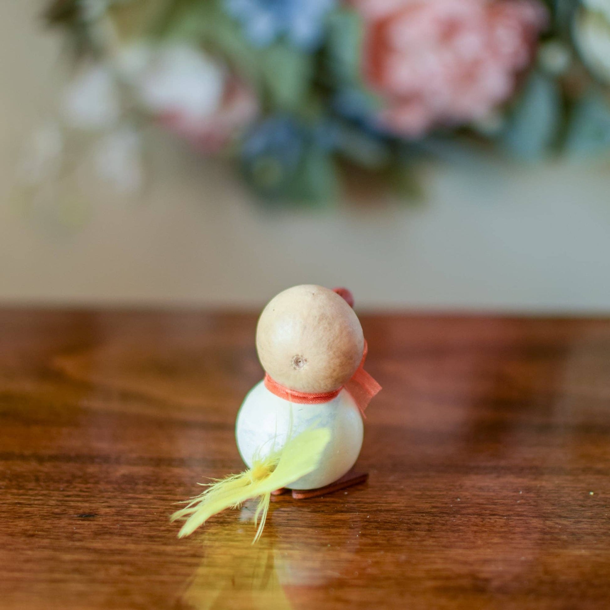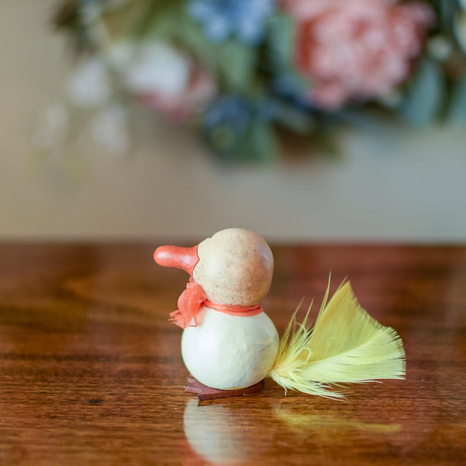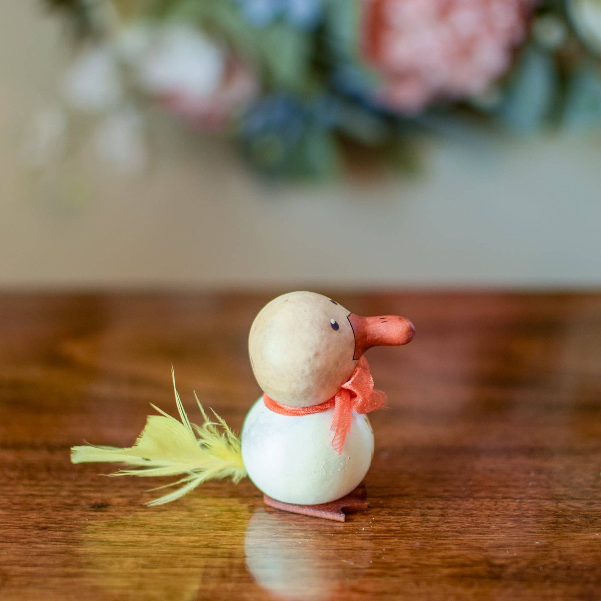Dillard is our adorable little duck that has a fluffy yellow tail. White, natural and burnt orange in color with an orange bow. Approximately 3” tall. Sold in packs of 5.