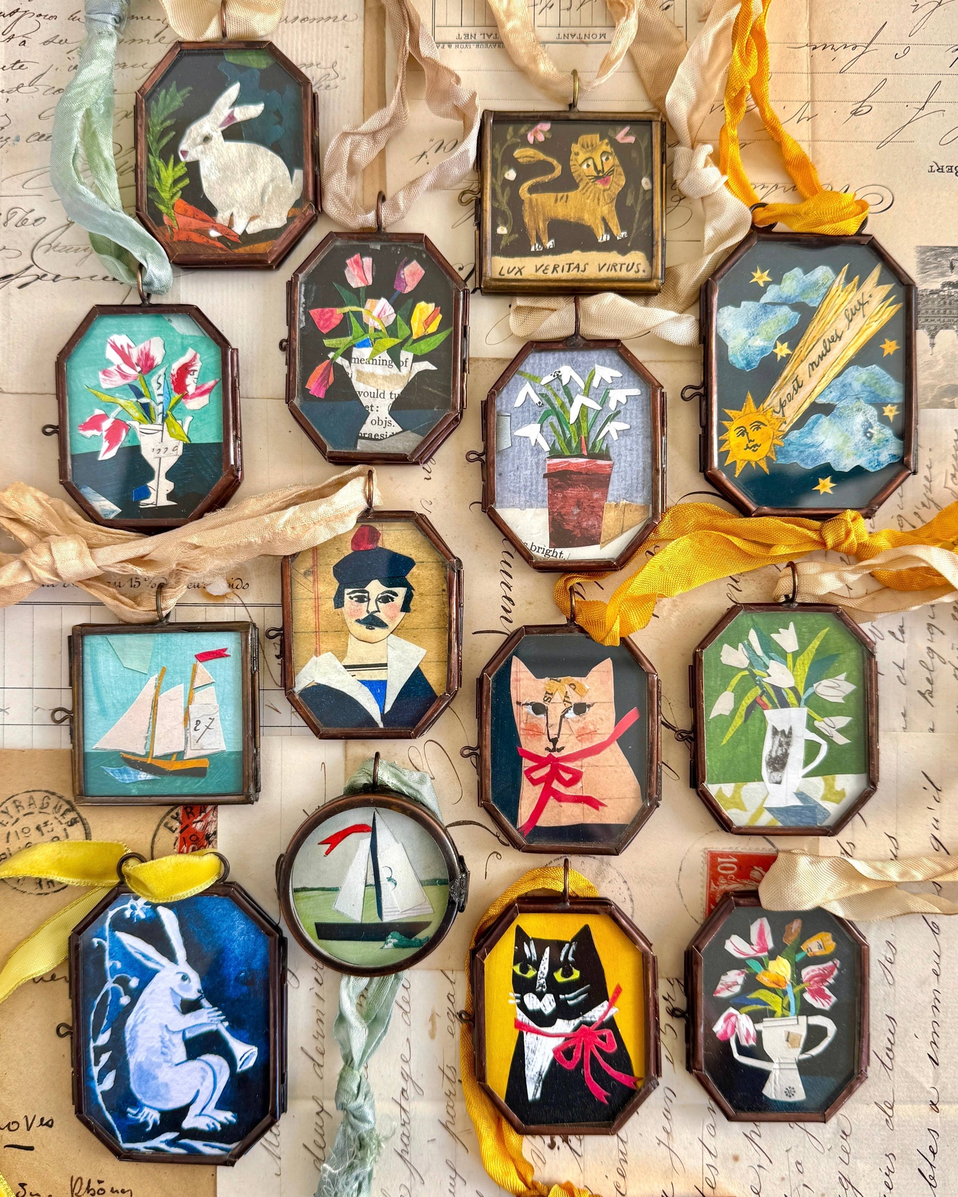 1.5" x 1.5" highest quality giclée print on 100% cotton paper - framed in petite antiqued glass locket frame.