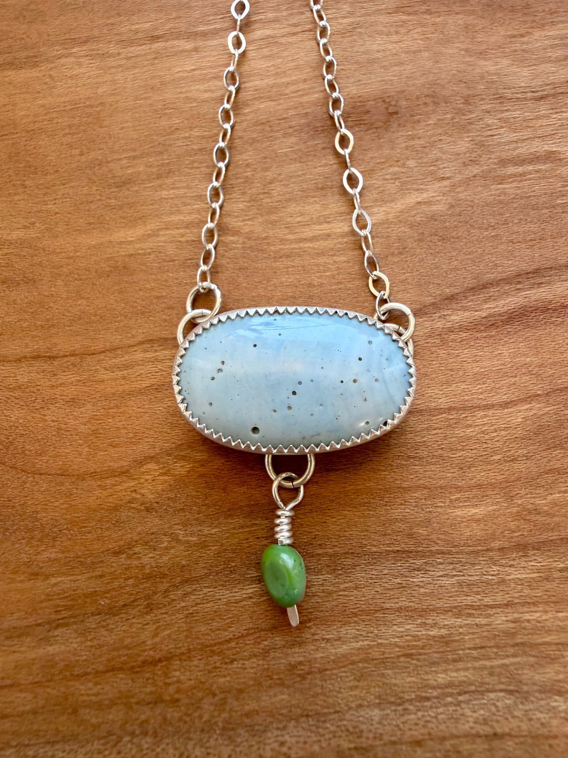 Sterling silver necklace with Leland Blue and Aventurine pendant