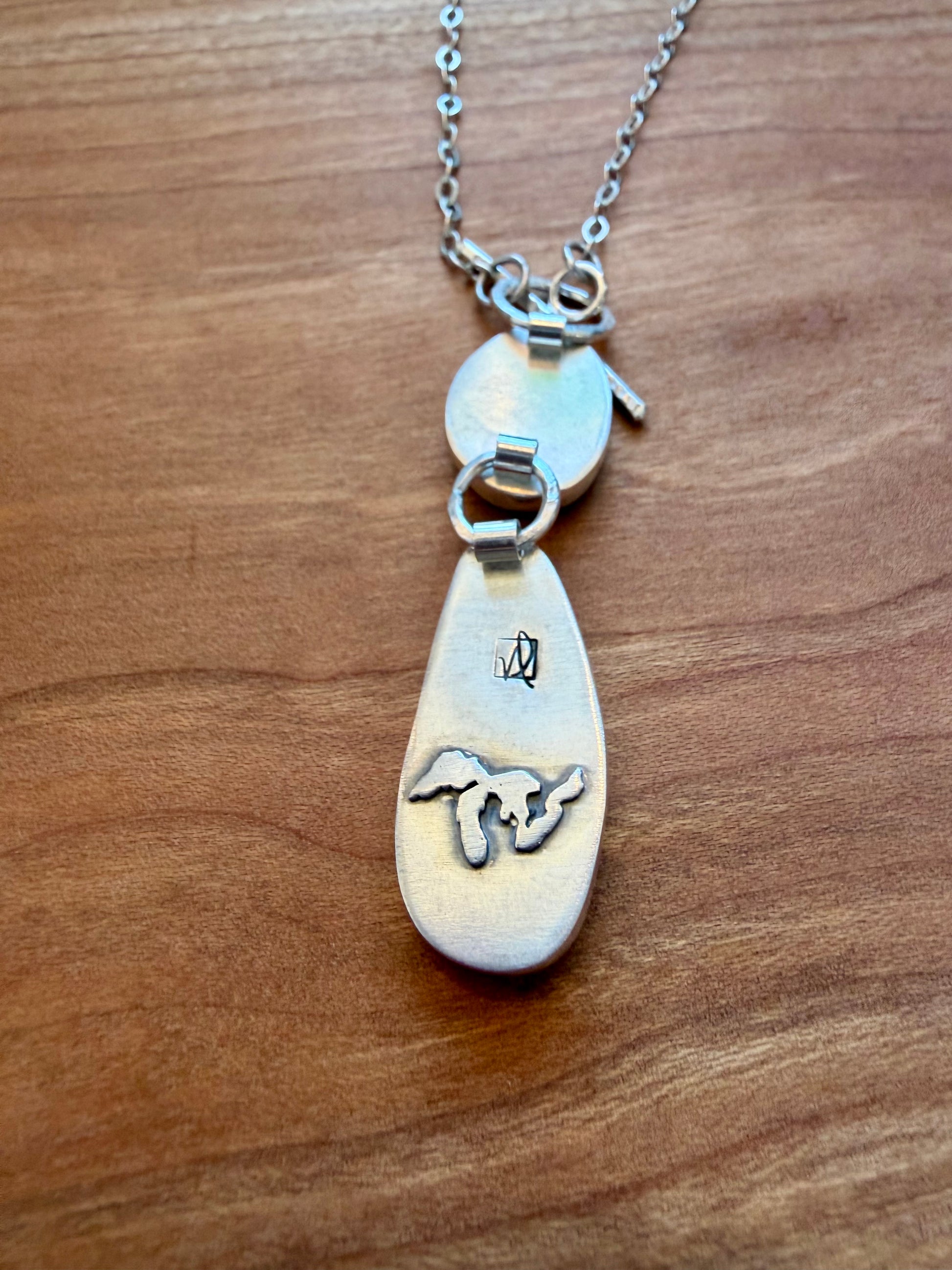 Sterling silver chain with Petoskey stone and Leland Blue pendant